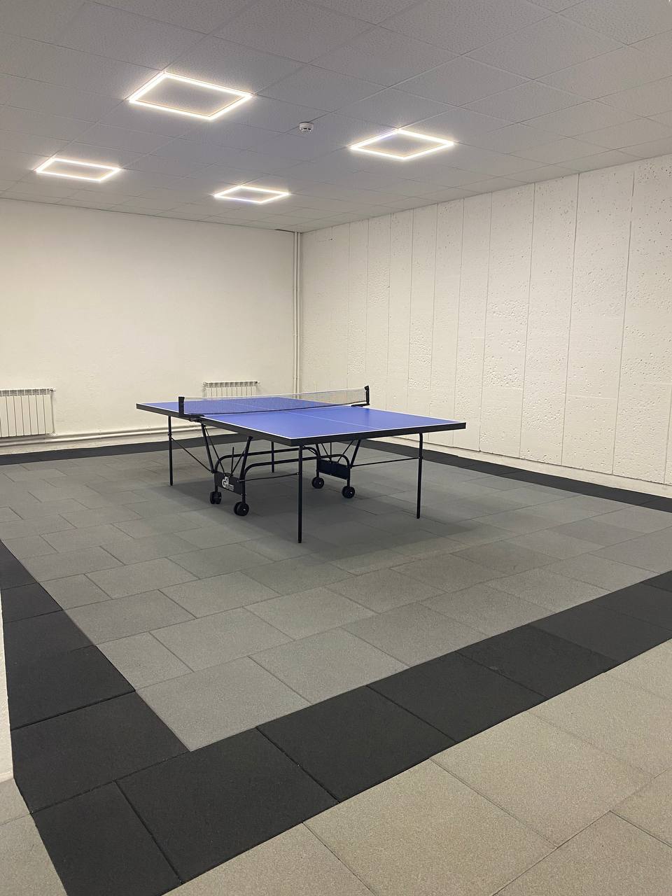 Облаштування залу для гри в настільний теніс. Площа - 185 м2.