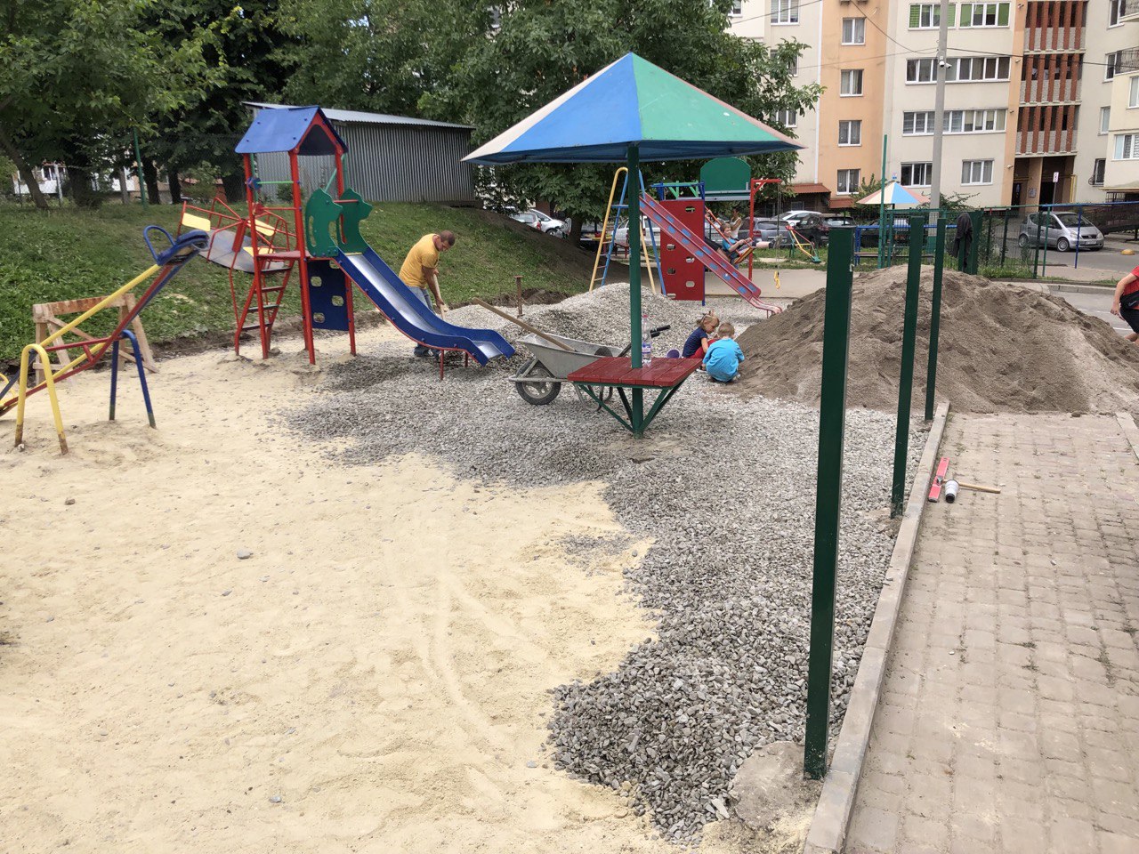 Облаштування дитячого майданчика. Площа - 46 м2. Виконано монтаж "під ключ".