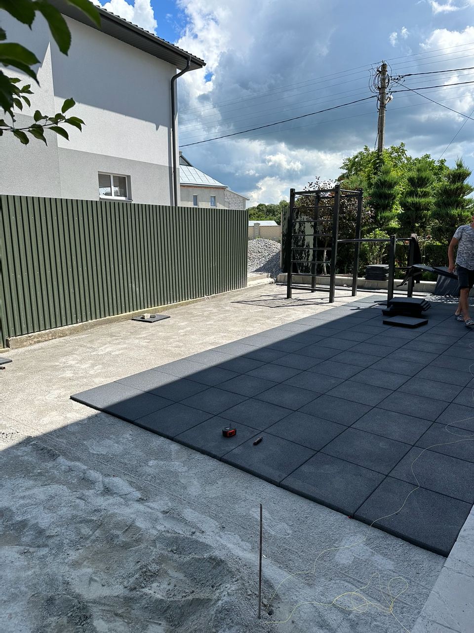 Встановлення гумової плитки у спортзалі (зона для кросфіту). Площа - 120м2.